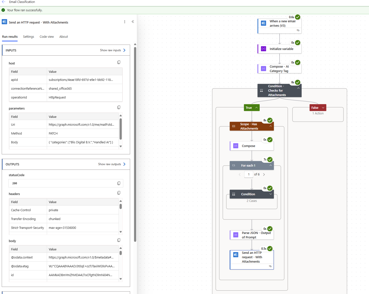 - De laatste stap is het bijwerken van de e-mail in Outlook zelf. Dat gebeurt via de Microsoft Graph API.
